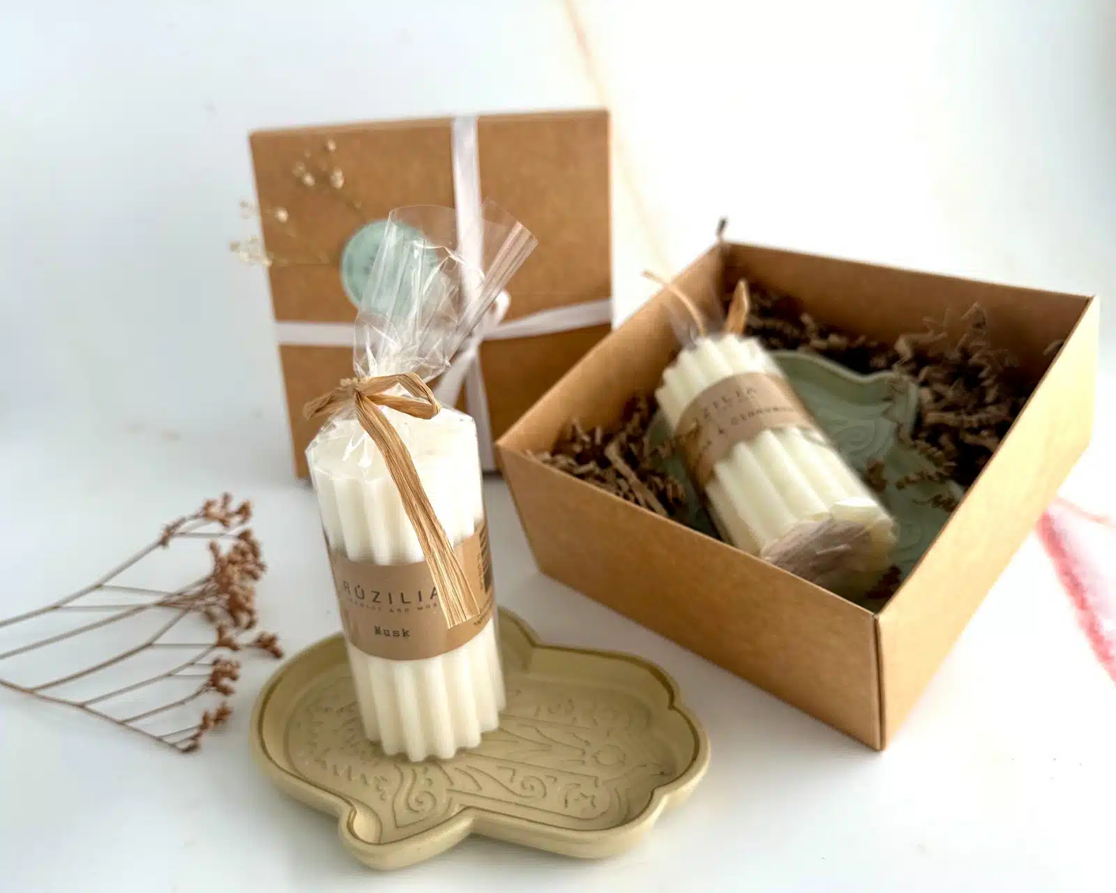 צלוחית חמסה מעוצבת, נר ריקו בניחוח לבחירה וסגרתם אחלה פינה.