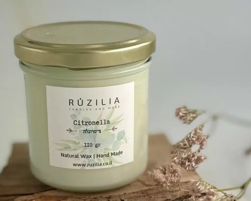 נר משעוות סויה טבעית בניחוח ציטרונלה מיוחד הפועל להרחקת יתושים בזמן בעירה.