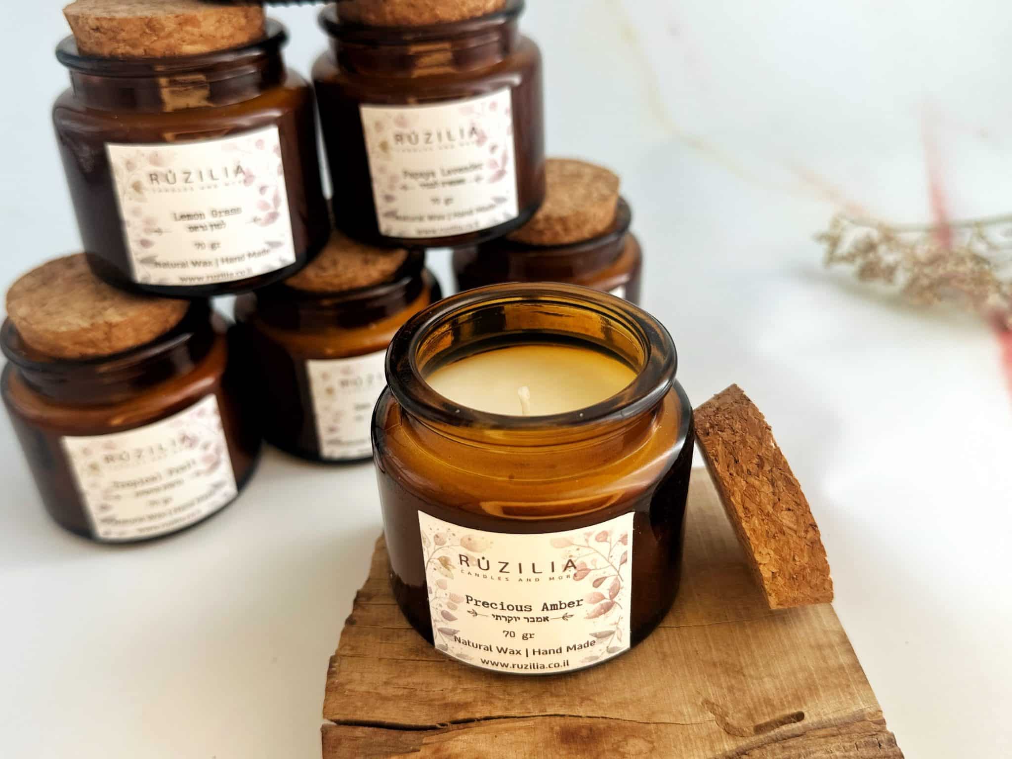נמזג באהבה בעבודת יד שלנו ומכיל כ 70 גרם שעוות סויה טבעית בניחוח לבחירה מרשימת הניחוחות.