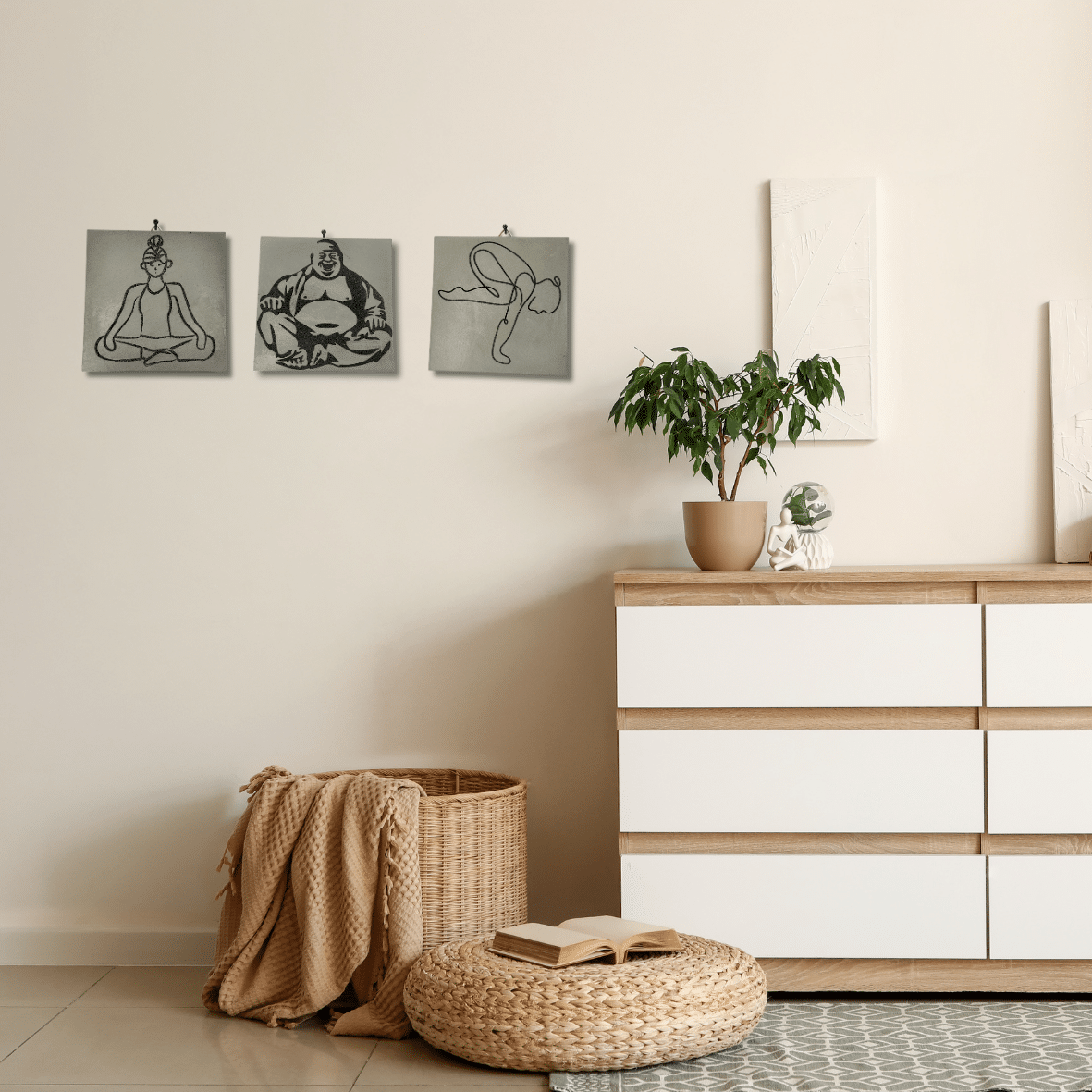 תמונת בטון בעיצוב נורדי עדין עם חריטת לייזר תמונה של פרחים בצנצנת