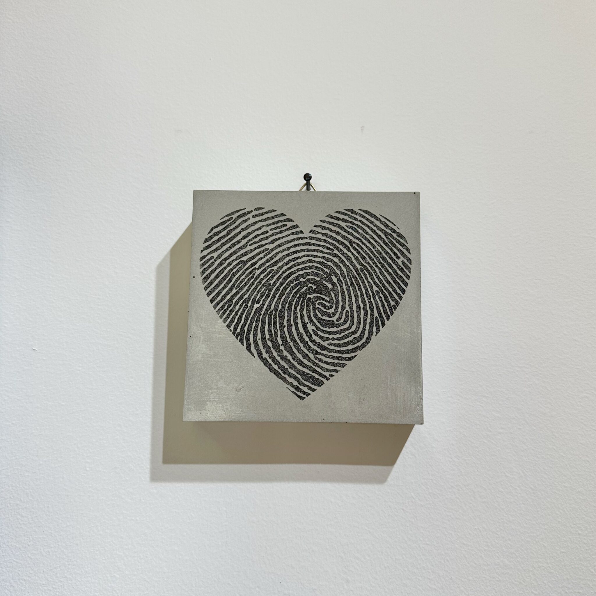 תמונת בטון בעיצוב נורדי עדין עם חריטת לייזר תמונה של טביעת אצבע לב.