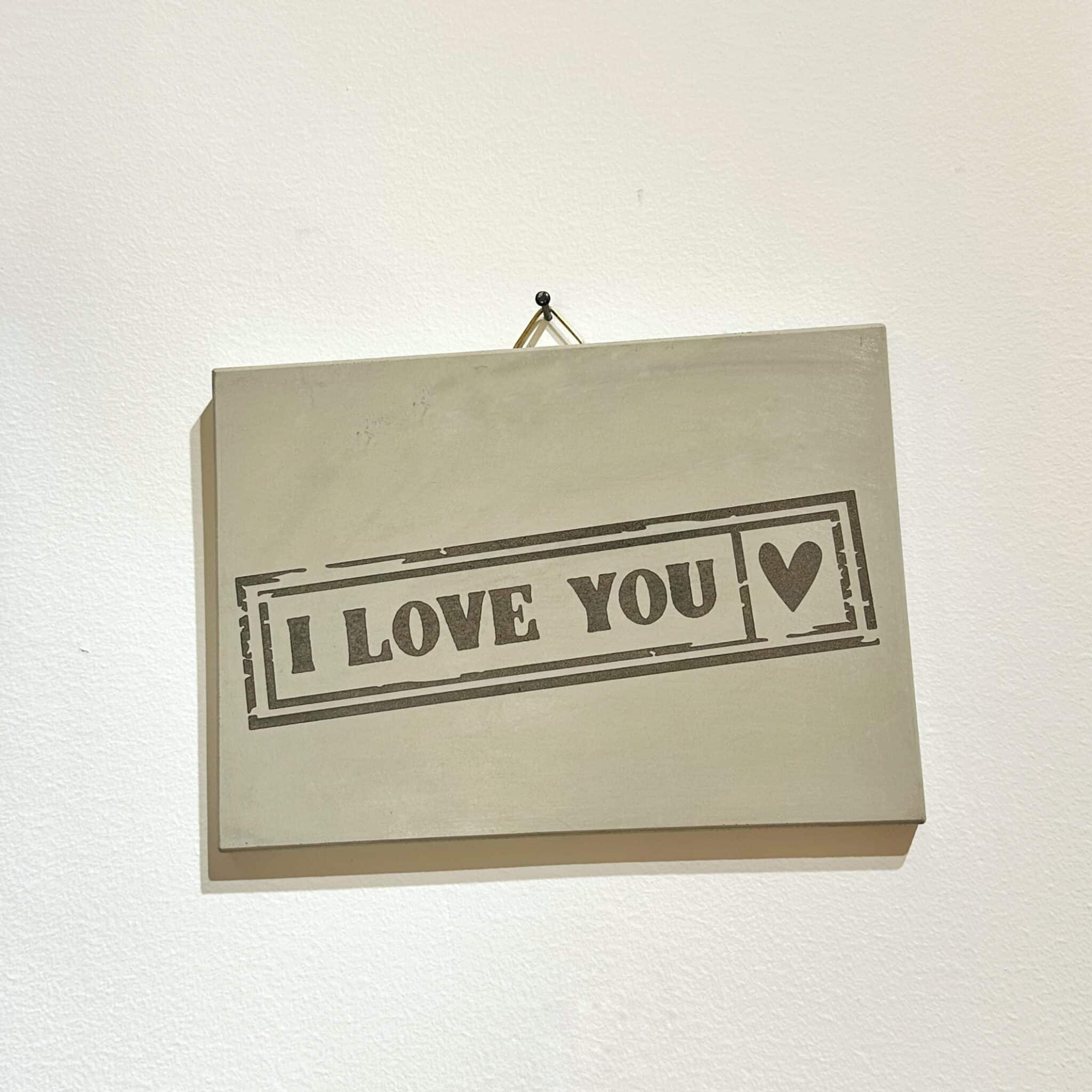 תמונת בטון בעיצוב נורדי עדין עם חריטת לייזר: "I LOVE YOU"